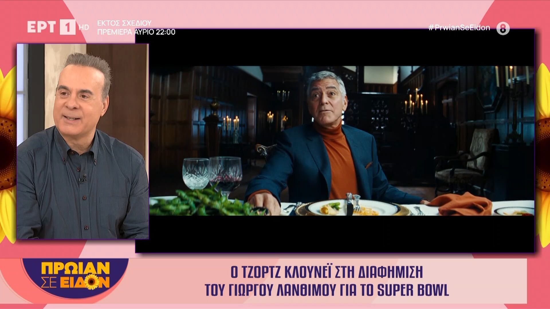 Ο Τζορτζ Κλούνεϊ εμφανίζεται για πρώτη φορά σε διαφήμιση Super Bowl, σε σκηνοθεσία του Γιώργου Λάνθιμου, χωρίς αμοιβή, λόγω του θαυμασμού του για τον Έλληνα σκηνοθέτη.