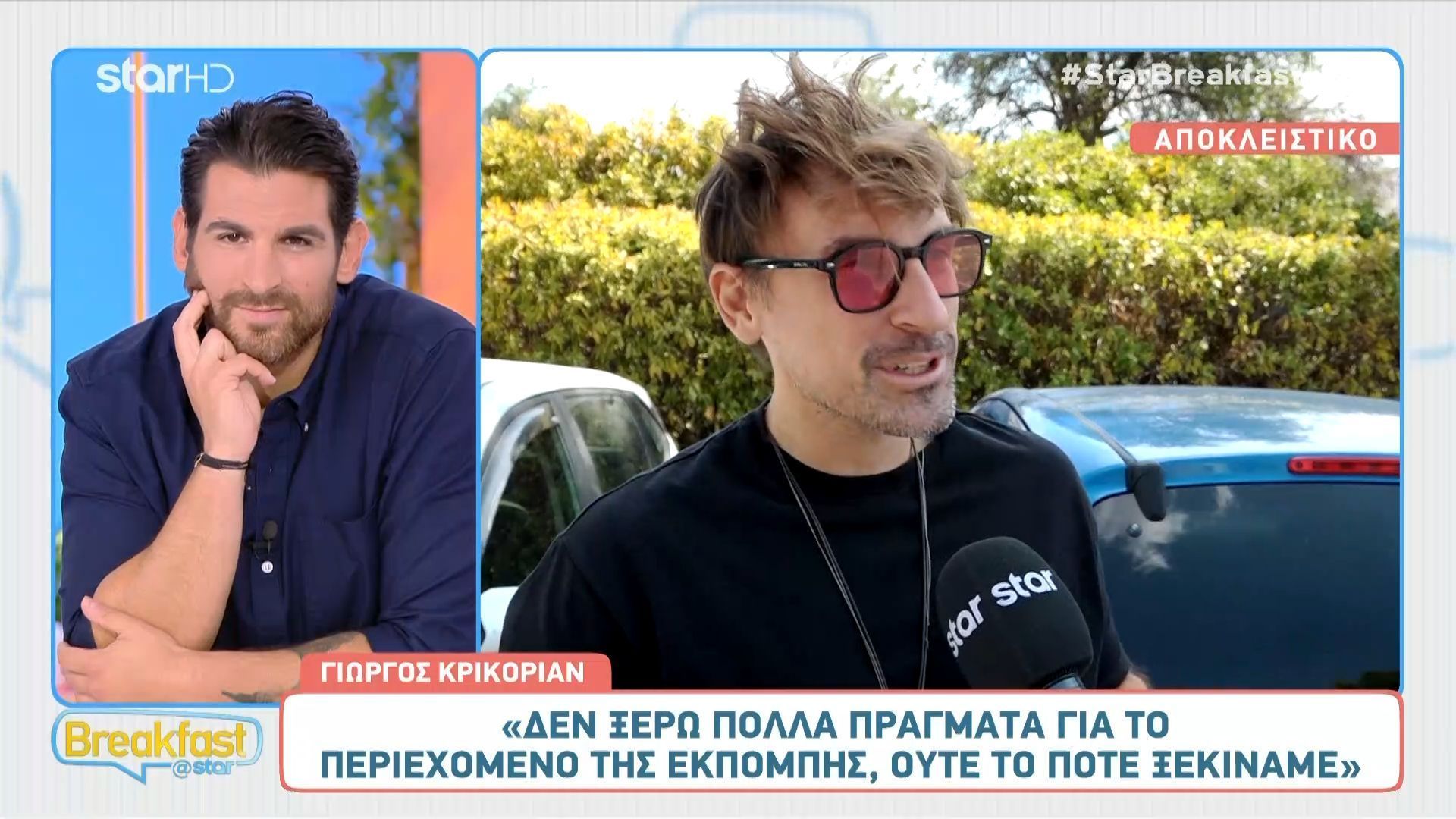 Ο Γιώργος Κρικοριάν μιλάει για τη συνεργασία του με τον Θανάση Πάτρα στην εκπομπή του Open, ενώ δηλώνει πως δεν γνωρίζει πολλά για το περιεχόμενο της εκπομπής.