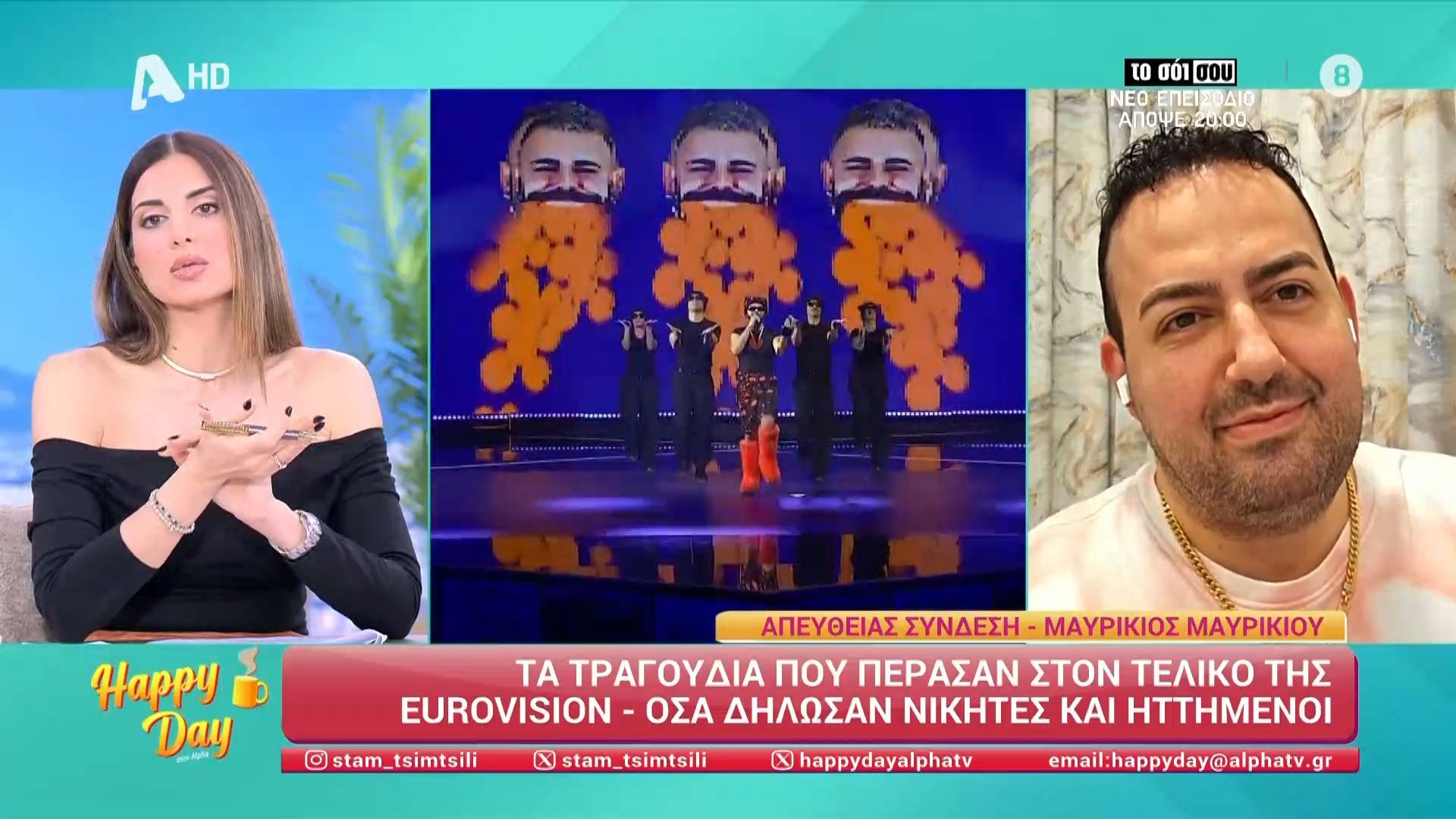 Ο Μαυρίκιος Μαυρικίου μιλάει στο Happy Day για τις συμμετοχές του Α' ημιτελικού του ελληνικού τελικού της Eurovision.