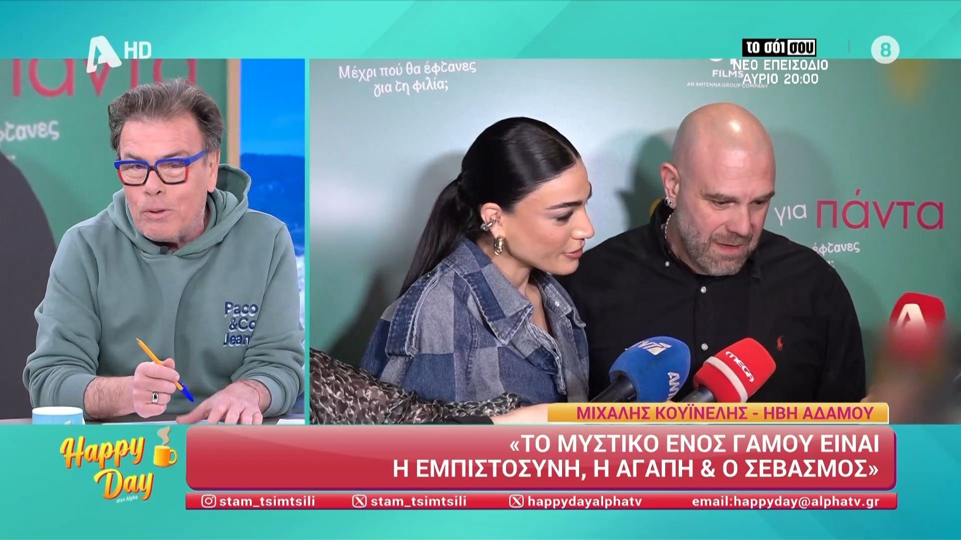 Η ομάδα του Happy Day σχολιάζει όσα είπαν στην κάμερα της εκπομπής η Ήβη Αδάμου και ο Μιχάλης Κουϊνέλης.