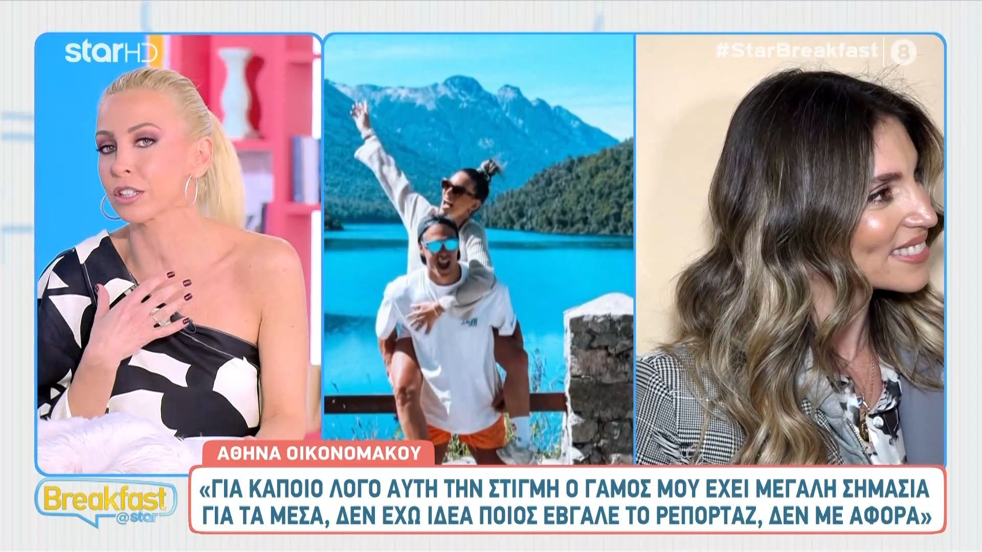 Η Αθηνά Οικονομάκου σχολίασε τις διαρροές για τον γάμο της, δηλώνοντας ότι δεν χαίρεται, αλλά αποδέχεται όσα δεν μπορεί να ελέγξει και δεν την αφορά ποιος έβγαλε το ρεπορτάζ.