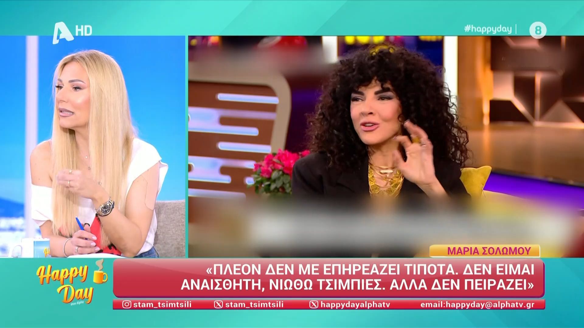Η ομάδα του Happy Day σχολιάζει τη συνέντευξη της Μαρίας Σολωμού στον Γρηγόρη Αρναούτογλου.