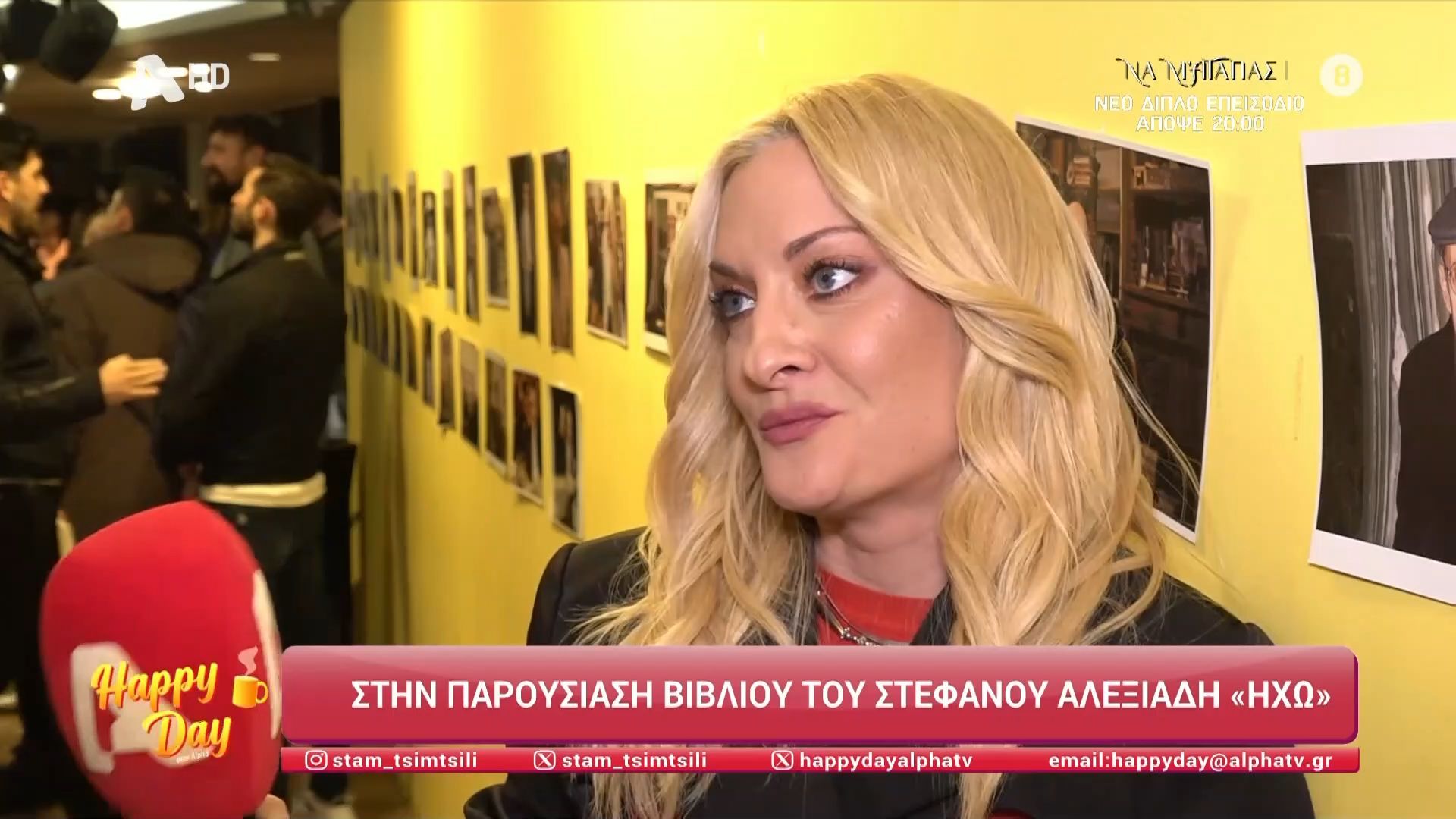 Η κάμερα του Happy Day συνάντησε τη Ναταλία Αργυράκη στην παρουσίαση βιβλίου του Στέφανου Αλεξιάδη.