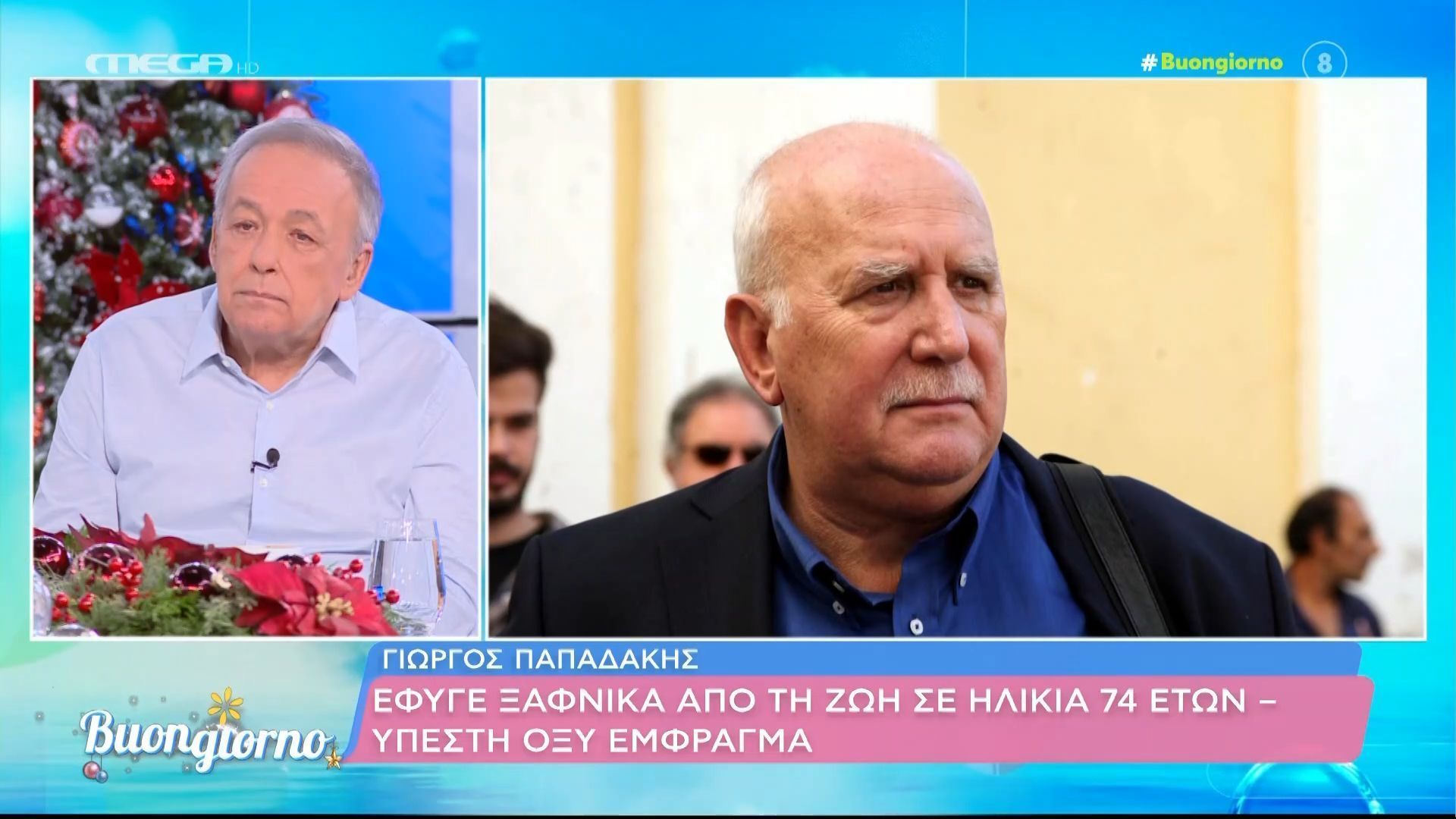 Ο ΑΝΤ1 αποχαιρετά με βαθιά θλίψη τον Γιώργο Παπαδάκη, τον δημοσιογράφο που σημάδεψε την πρωινή ενημέρωση για 37 χρόνια, αφήνοντας δυσαναπλήρωτο κενό στην τηλεόραση.