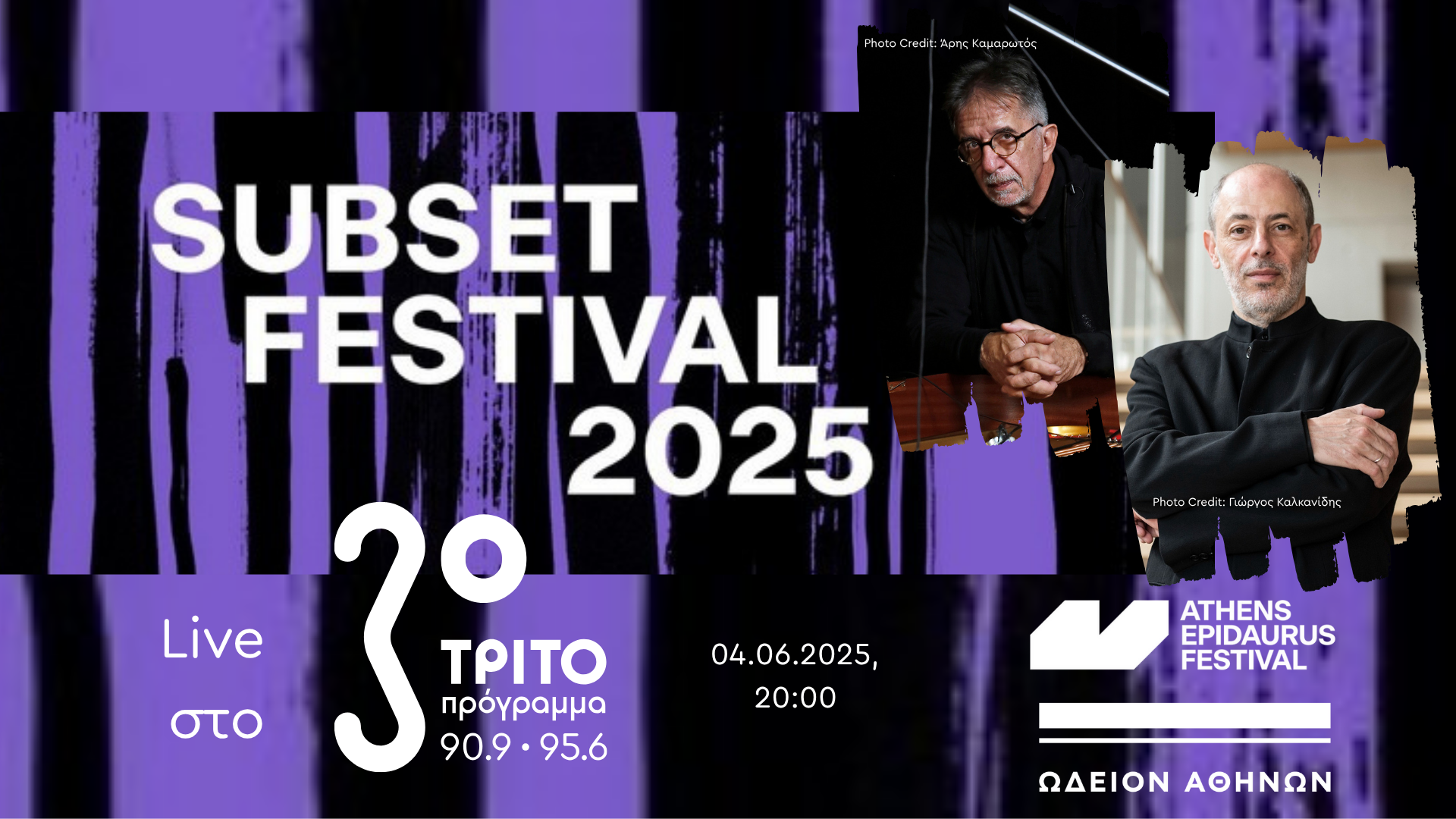 Το Τρίτο Πρόγραμμα στηρίζει τη σύγχρονη ελληνική και ξένη δημιουργία αγκαλιάζοντας το Subset Festival, που εστιάζει στον διάλογο της σύγχρονης μουσικής με τα νέα μέσα και πραγματοποιείται από τις 4 έως τις 8 Ιουνίου.