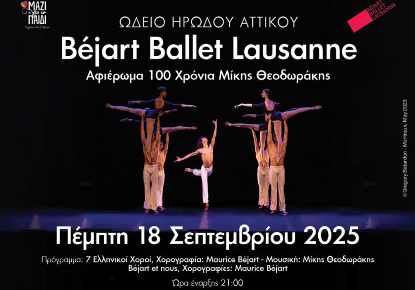 Τα Μπαλέτα Μπεζάρ της Λωζάνης επιστρέφουν στο Ηρώδειο στις 18 Σεπτεμβρίου 2025 με μια παράσταση αφιερωμένη στον Μίκη Θεοδωράκη, υποστηρίζοντας την Ένωση «Μαζί για το Παιδί».