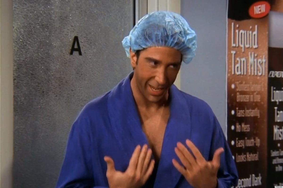 Ο Ρος αποφασίζει πως θέλει να μαυρίσει αλλά τα αποτελέσματα προκαλούν μόνο γέλιο. Η Ρέιτσελ και ο Τζόι προσπαθούν να λειτουργήσουν σαν ζευγάρι αλλά αισθάνονται και οι δύο μεγάλη αμηχανία. Η Μόνικα και η Φοίβη δέχονται την επίσκεψη μιας παλιάς τους φίλης.