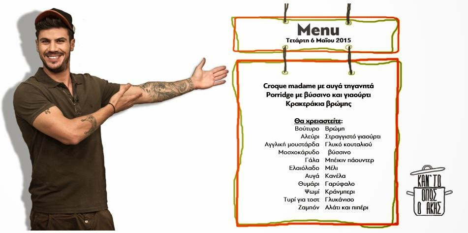 Συνταγές για το ξεκίνημα της ημέρας μας περιλαμβάνει το σημερινό επεισόδιο. Croque madame με τηγανητό αυγό, porridge με βύσσινο και γιαούρτι και κρακεράκια βρώμης. Νόστιμα πιάτα για το πρωινό μας - και όχι μόνο.