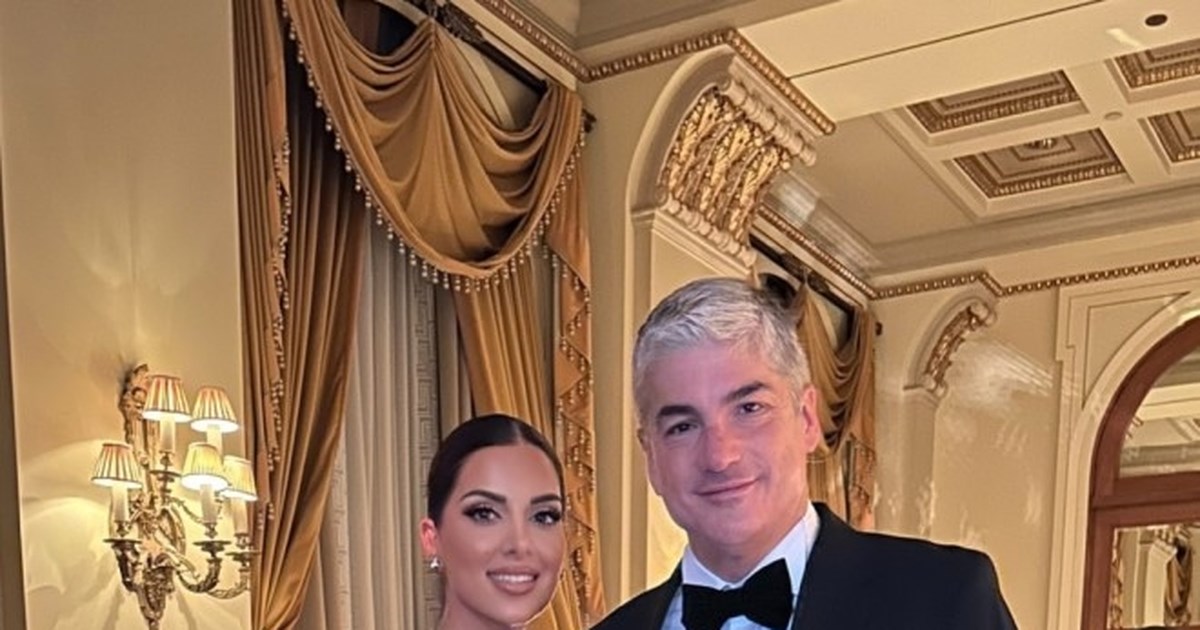 Το ζευγάρι ήταν καλεσμένο στον γάμο της δημοσιογράφου Αλεξάνδρας Χατζηγεωργίου και η παρουσιάστρια ξεχώρισε φορώντας ένα silver embellished φόρεμα της Celia Kritharioti με εντυπωσιακές κρυστάλλινες λεπτομέρειες στο μπούστο και σκίσιμο.