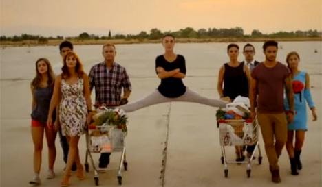 Περαν του ότι το κόνσεπτ σε προδιαθέτει ότι πρόκειται για δράμα κι όχι κωμωδία. Το περιφημο σπαγκάτο της Μαρίας Σολωμού πάνω σε δυο καρότσια σουπερ μάρκετ δεν ήταν έμπνευση του mega αφου πρώτος είχε κάνει κάτι παρόμοιο ο Ζαν Κλοντ Βαν Νταμ σε μια διαφημιστηκή καμπάνια για φορτηγά.