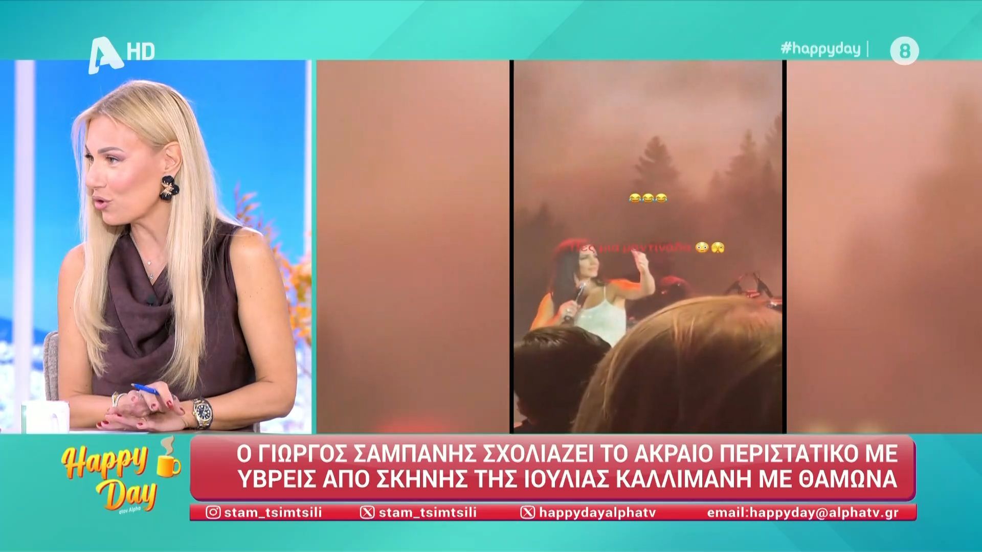 Ο Γιώργος Σαμπάνης σχολιάζει το περιστατικό με υβρεις από σκηνής της Ιουλίας Καλλιμάνη, ενώ η παρουσιάστρια αναφέρεται στην αντίδραση της τραγουδίστριας.