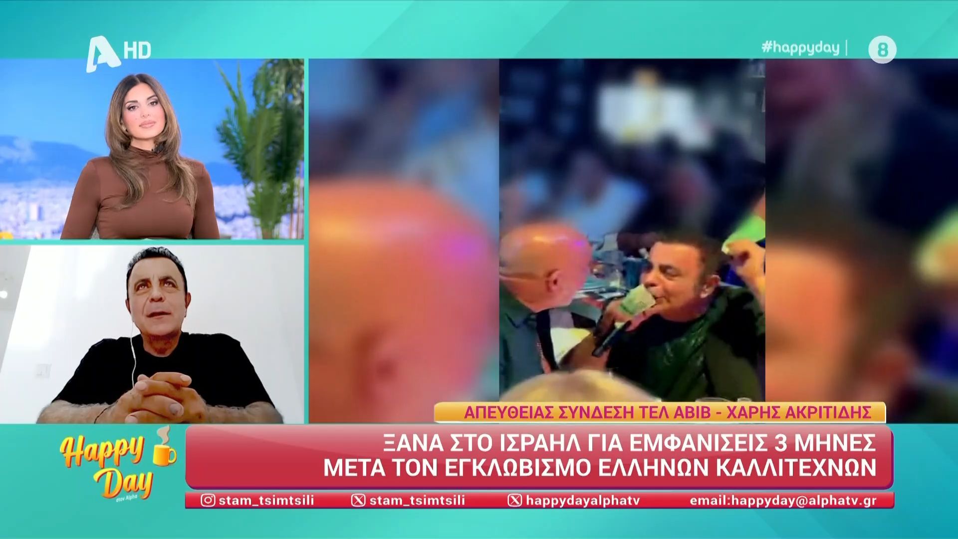Ο Χάρης Ακριτίδης μιλάει για τις εμφανίσεις του στο Τελ Αβίβ, ενώ σχολιάζει την κατάσταση στην περιοχή.