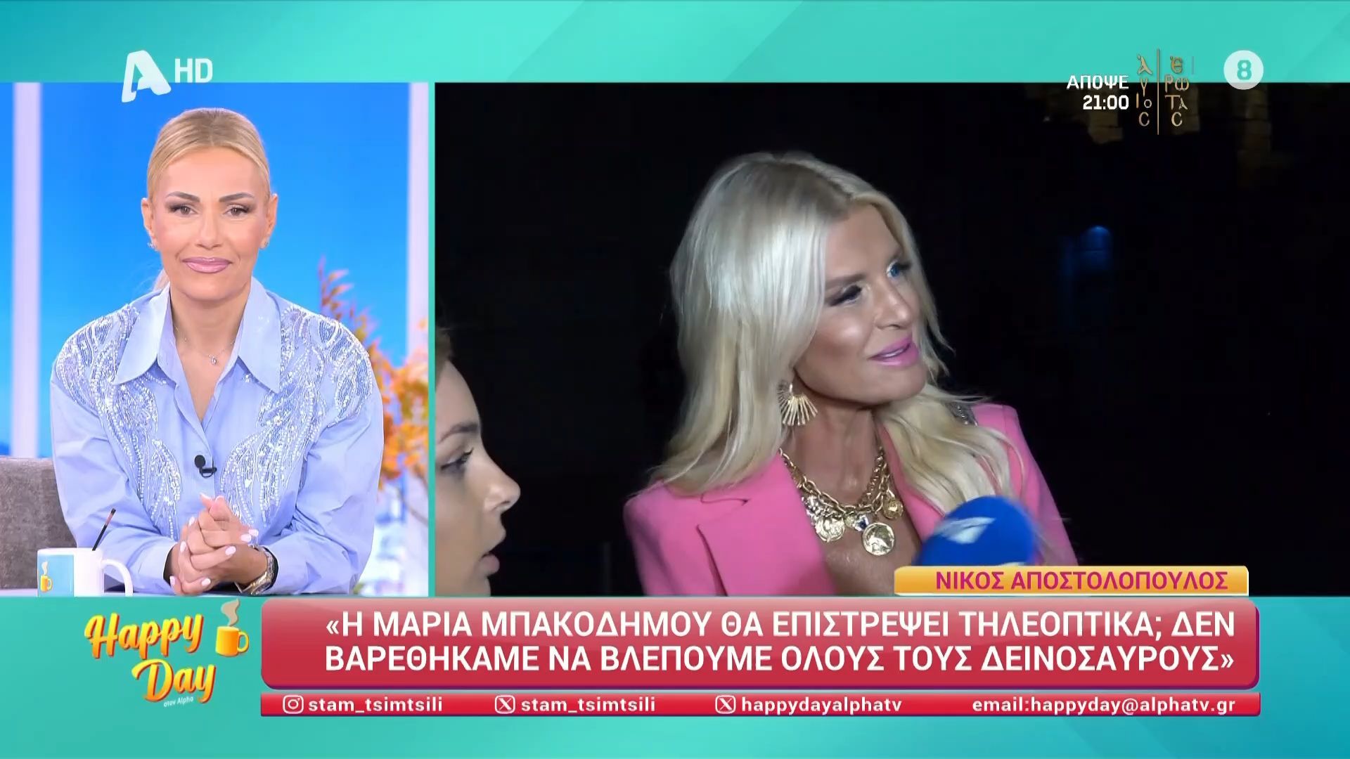 Ο Νίκος Αποστολόπουλος μίλησε για την ηλικία του και σχολίασε την επιστροφή της Μαρίας Μπακοδήμου στην τηλεόραση.