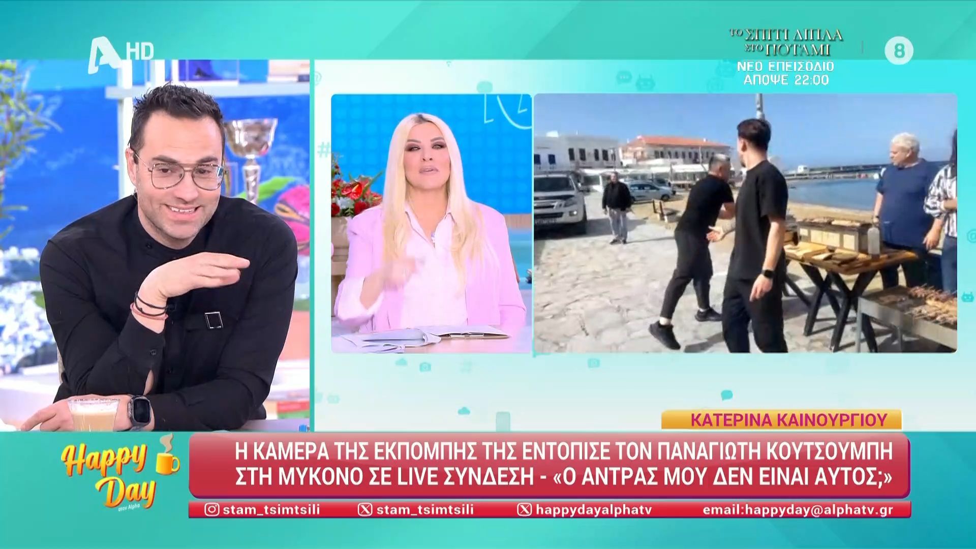 Η κάμερα της εκπομπής της Κ. Καινούργιου εντόπισε τον Παναγιώτη Κουτσουμπή στη Μύκονο σε live σύνδεση.
