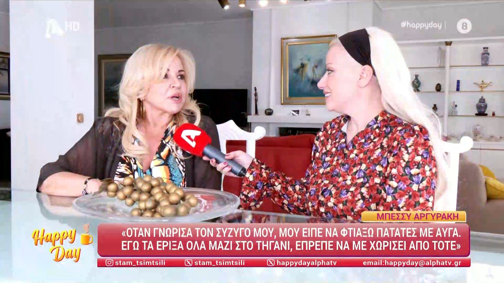 Η Μπέσσυ Αργυράκη άνοιξε το σπίτι της και αποκάλυψε πως ο σύζυγός της την ρωτάει τι ώρα θα γυρίσει για να είναι έτοιμο το φαγητό.