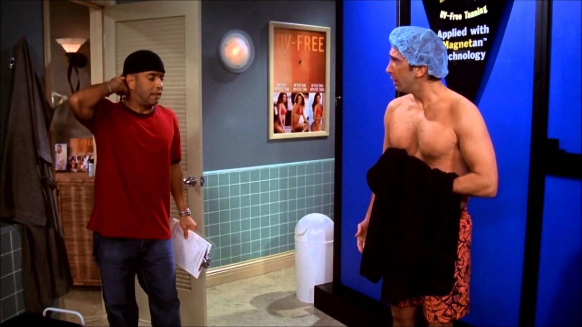 Ο Ρος αποφασίζει πως θέλει να μαυρίσει αλλά τα αποτελέσματα προκαλούν μόνο γέλιο. Η Ρέιτσελ και ο Τζόι προσπαθούν να λειτουργήσουν σαν ζευγάρι αλλά αισθάνονται και οι δύο μεγάλη αμηχανία. Η Μόνικα και η Φοίβη δέχονται την επίσκεψη μιας παλιάς τους φίλης.