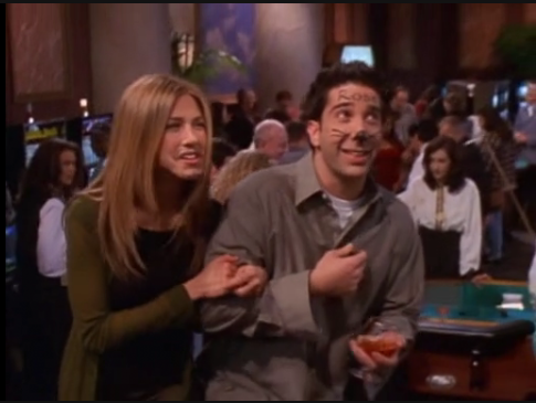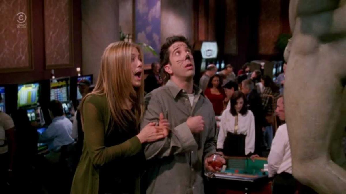 Η Φοίβη συμβουλεύει τη Μόνικα να ζητήσει συγνώμη από τον Τσάντλερ αλλά εκείνη προτιμάει να παίξει στο καζίνο. Η Φοίβη λέει στον Τσάντλερ πως η Μόνικα έχει μετανιώσει και εκείνος πηγαίνει να την βρει. Απογοητεύεται όταν τη βλέπει ενθουσιασμένη και ξέγνοιαστη να τζογάρει και φεύγει. Ενώ η Ρέιτσελ κοιμάται, ο Ρος ζωγραφίζει στο πρόσωπο της ένα μουστάκι. Γίνεται έξαλλη όταν αντιλαμβάνεται πως δεν μπορεί να το βγάλει. Η Μόνικα τα ξαναβρίσκει με τον Τσάντλερ και ορκίζεται να μην ξαναδεί τον Ρίτσαρντ. Η Ρέιτσελ αρνείται να βγει από το δωμάτιο της και ο Ρος μένει μαζί της. Οι δυο τους μεθάνε ενώ παίζουν χαρτιά. Η Μόνικα και ο Τσάντλερ κερδίζουν στο καζίνο και σε μια στιγμή ενθουσιασμού αποφασίζουν να παντρευτούν στο Λας Βέγκας το ίδιο βράδυ. Όταν πάνε στο παρεκκλήσι συναντούν τον Ρος και τη Ρέιτσελ, μεθυσμένους και παντρεμένους...