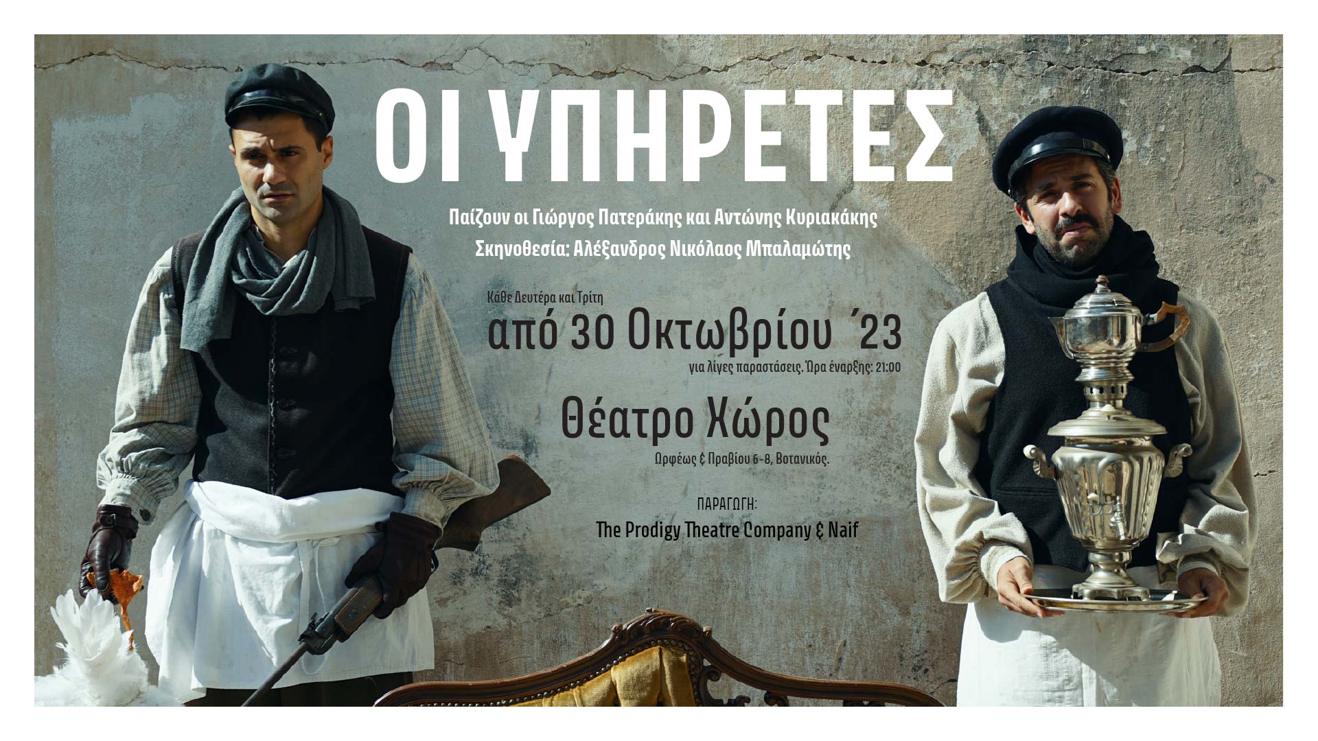 Οι «Υπηρέτες» σε σκηνοθεσία Αλέξανδρου Νικόλαου Μπαλαμώτη, ανεβαίνουν από την Δευτέρα 30 Οκτωβρίου, κάθε Δευτέρα και Τρίτη στις 21:00 στο θέατρο Χώρος, για λίγες παραστάσεις.