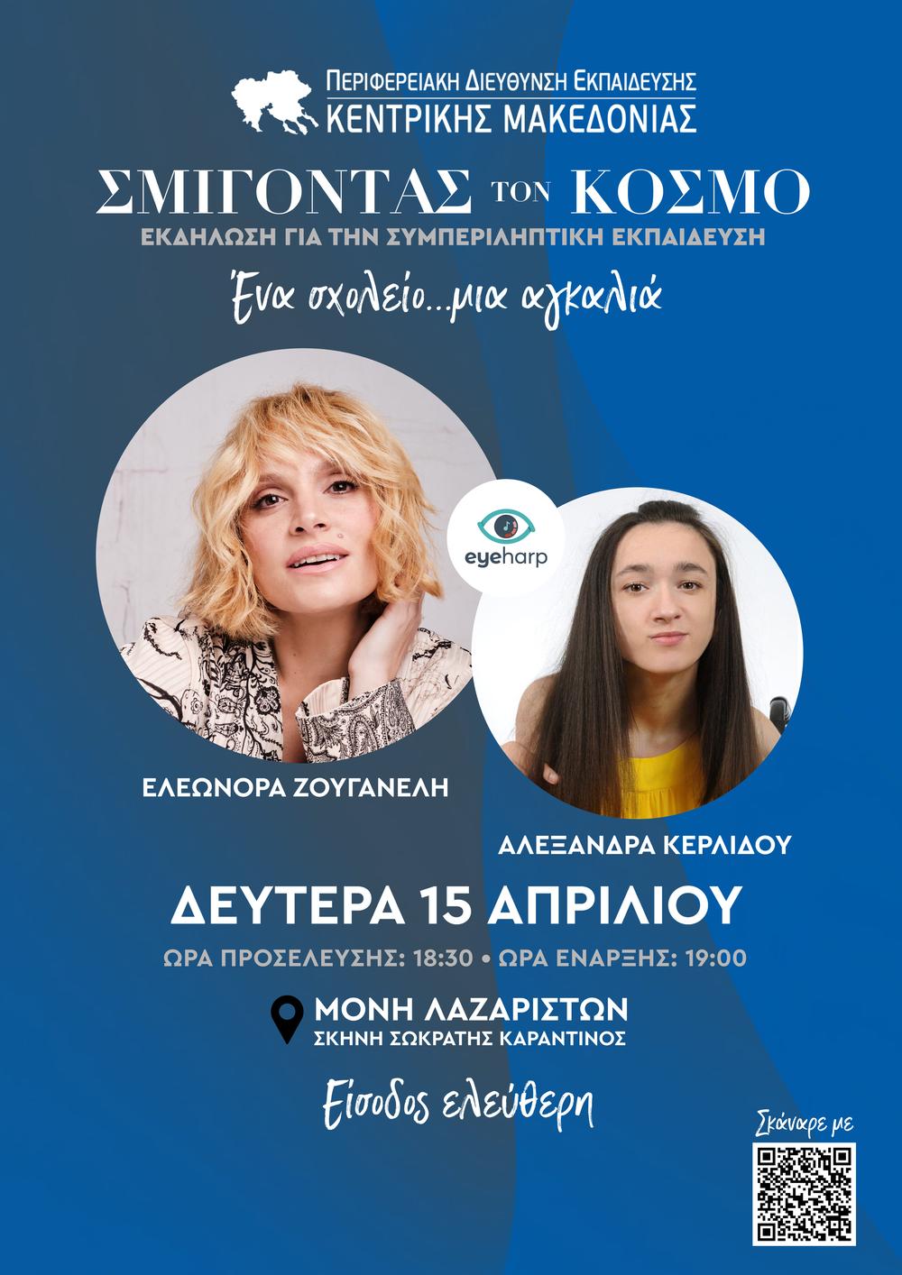 200 μαθητές τυπικής και μη τυπικής εκπαίδευσης, καθώς και η υπέροχη παιδική χορωδία με 100 μαθητές, θα μοιραστούν τη σκηνή με μία από τις πιο χαρισματικές ερμηνεύτριες, τη μαγευτική Ελεωνόρα Ζουγανέλη, για την οποία θα παίξει μουσική μόνο με τα μάτια χάρη στο eyeharp, η πρώτη τετραπληγική Ελληνίδα μουσικός Αλεξάνδρας Κερλίδου.