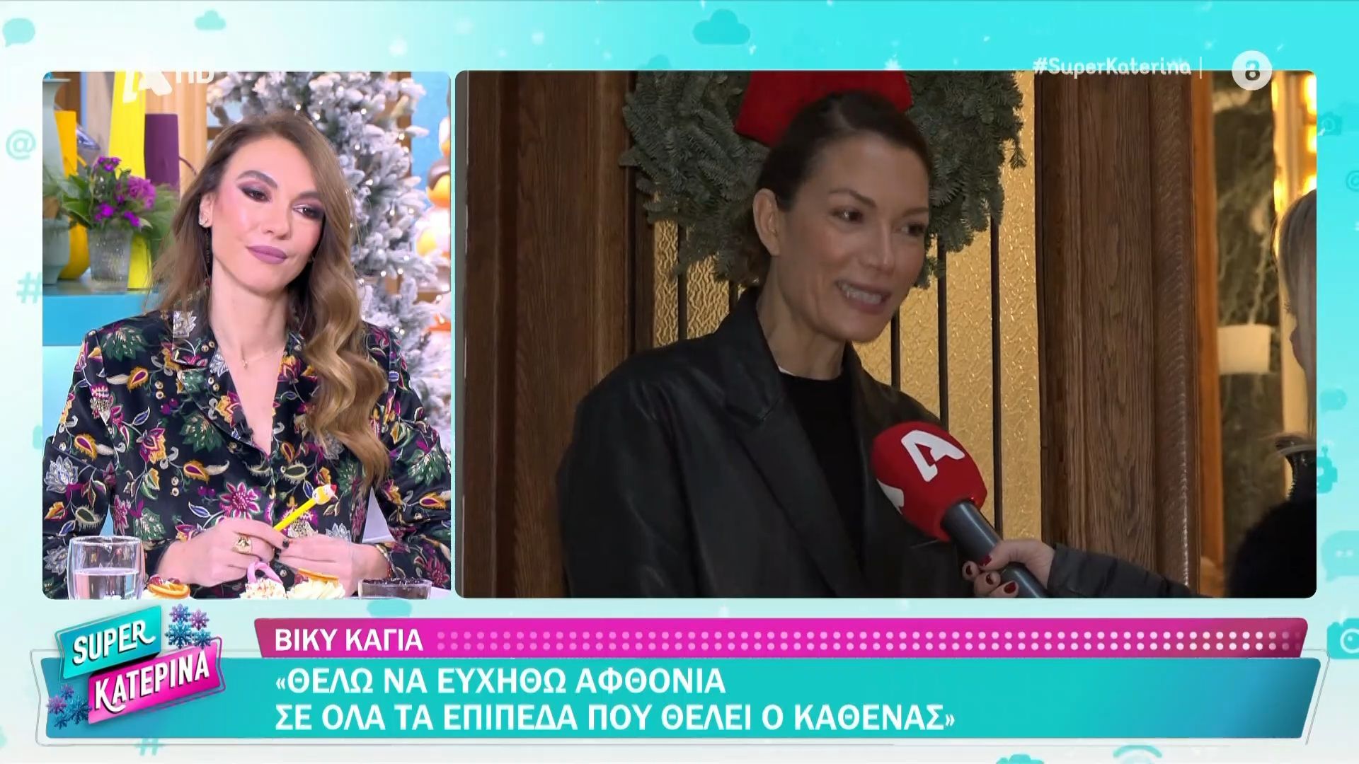 Η Βίκυ Καγιά μιλά αποκλειστικά στην κάμερα της Super Κατερίνα και στέλνει ευχές για τη νέα χρονιά, ενώ αναφέρει πως θα ήθελε να πει τα κάλαντα με την Κίμπερλι Γκιλφόιλ.