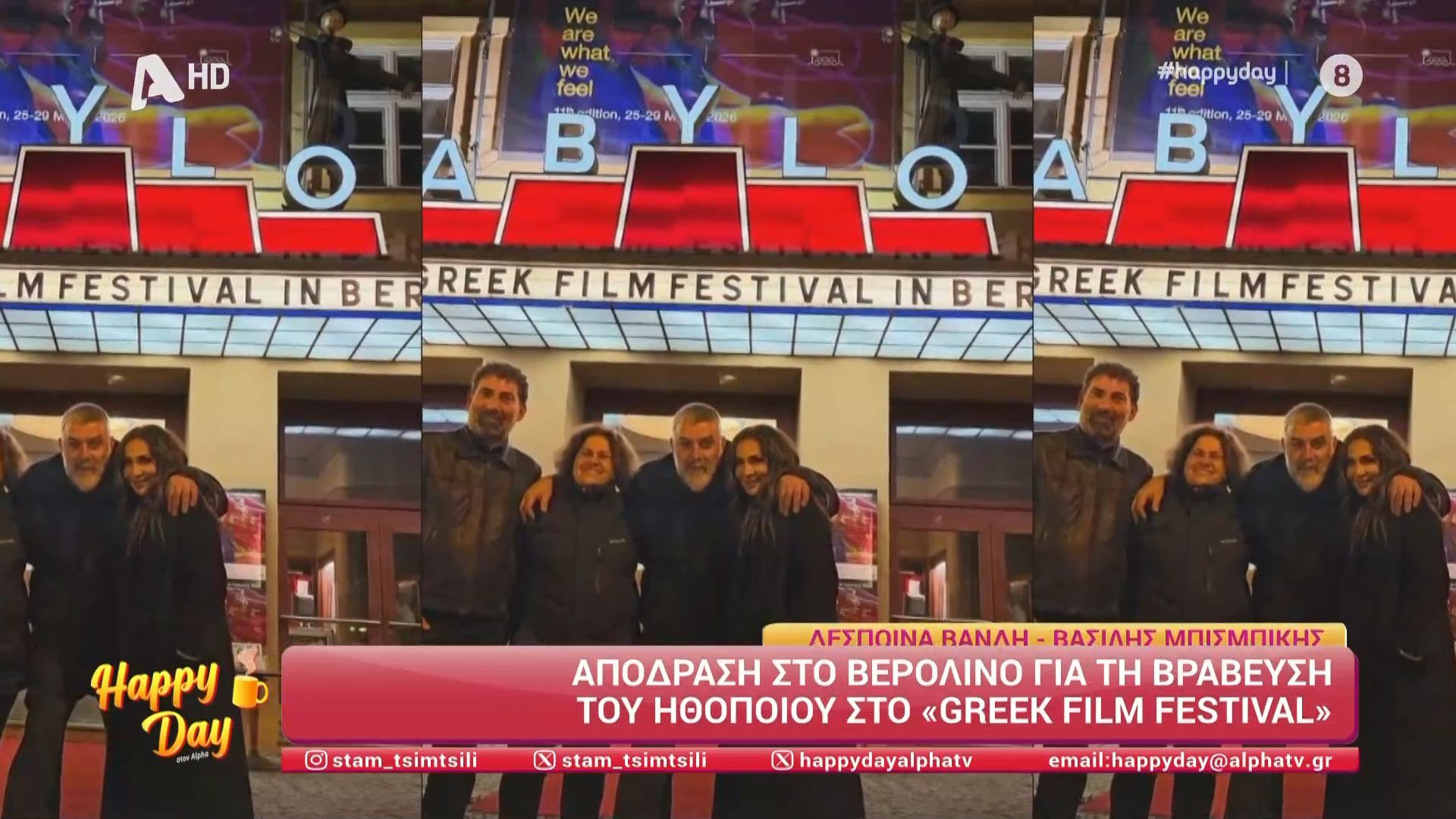 Φωτογραφίες από το ταξίδι τους στο Βερολίνο δημοσίευσε η Δέσποινα Βανδή με τον Βασίλη Μπισμπίκη, οι οποίοι βρέθηκαν εκεί για τη βράβευση του ηθοποιού στο Greek Film Festival.