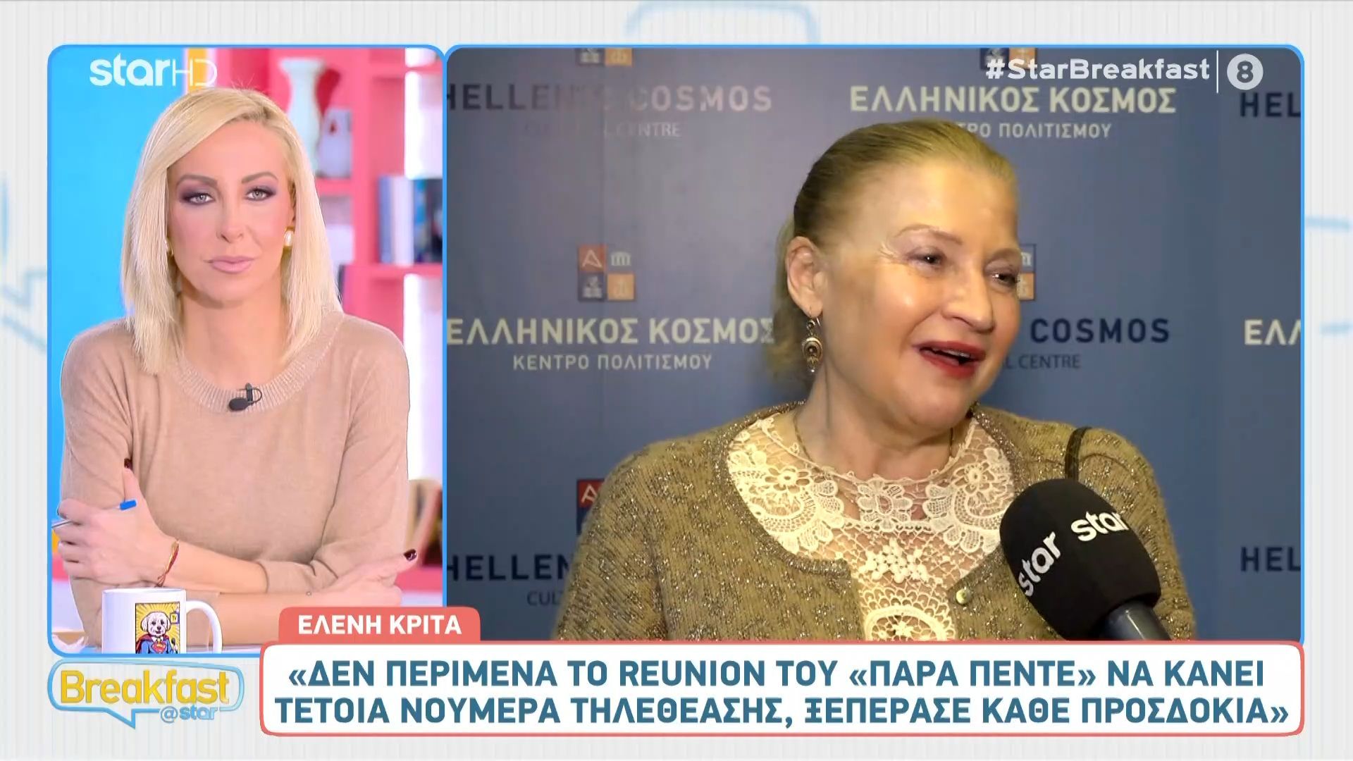 Η Ελένη Κρίτα μίλησε για την πολυαναμενόμενη συνάντηση του «Στο Παρά 5» μετά από 20 χρόνια, περιγράφοντας την εμπειρία ως κάτι που ήταν «ακριβώς όπως όταν χωρίσαμε». Η ηθοποιός τόνισε ότι, παρά το πέρασμα του χρόνου και τις επαγγελματικές αποστάσεις, η σχέση μεταξύ των μελών της ομάδας παραμένει αναλλοίωτη.