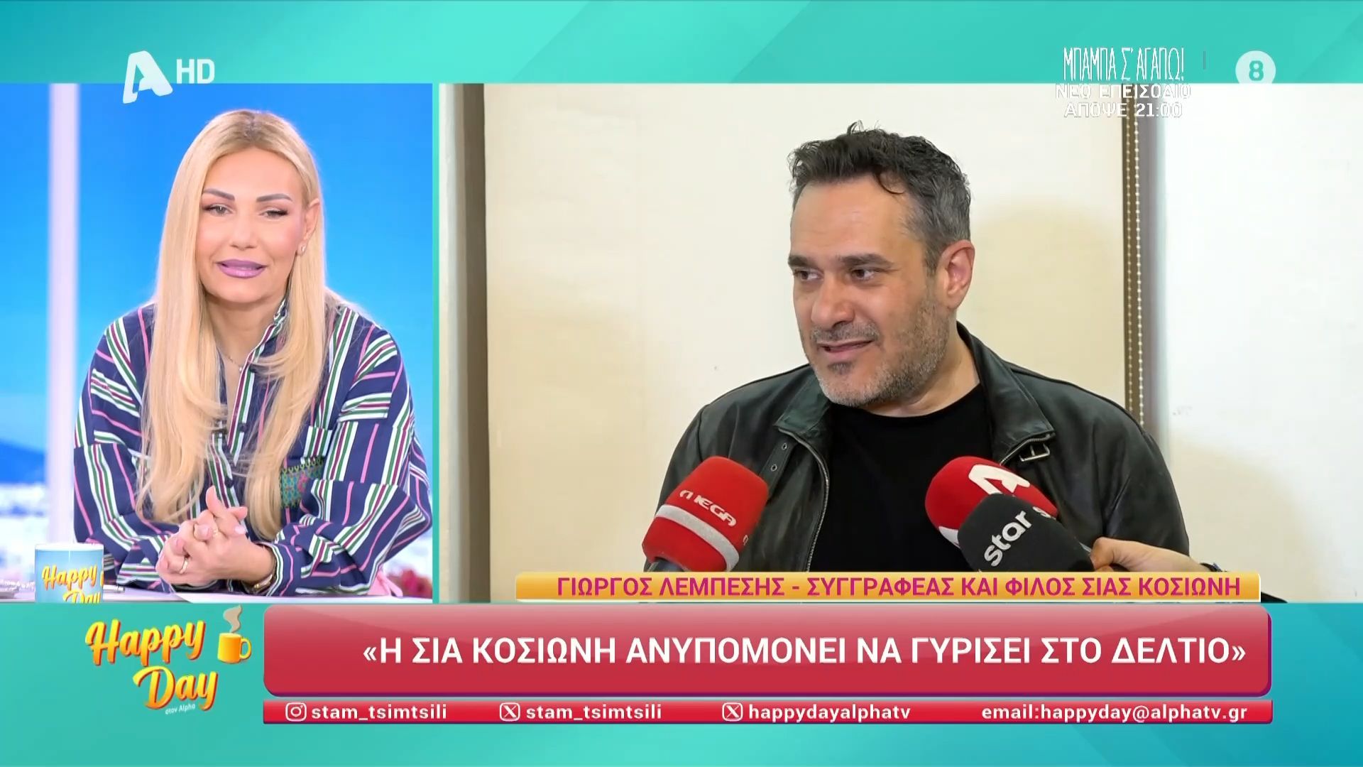 Η κάμερα του Happy Day βρέθηκε στην παρουσίαση βιβλίου του Γιώργου Λεμπέση, μίλησε για τον «κύκλο που ήθελε να γίνει κύκλος» και αναφέρθηκε στη φίλη του Σία Κοσιώνη και την περιπέτεια υγείας που αντιμετώπισε.