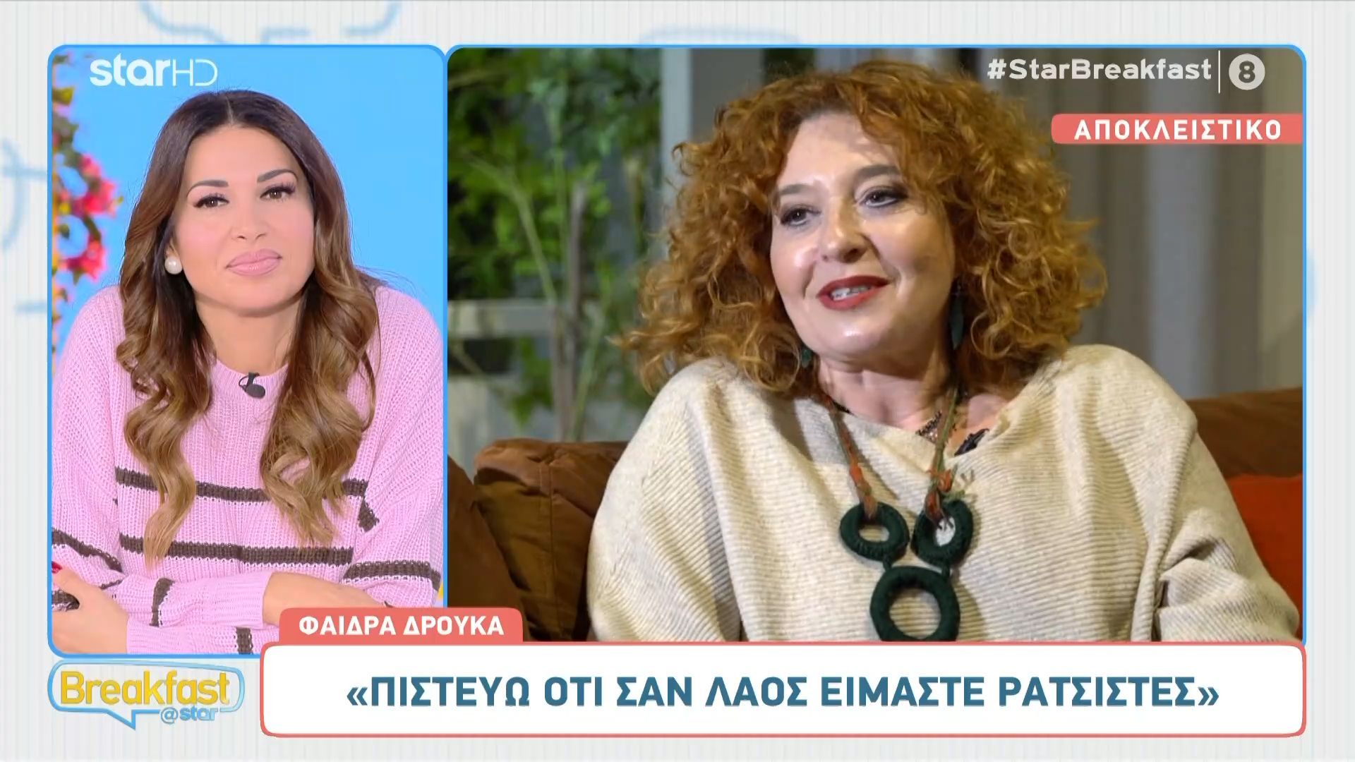Παράλληλα, η Φαίδρα Δρούκα αποκάλυψε πως τα γυρίσματα για τη σειρά «Υπέροχα Πλάσματα» ξεκινούν τον Μάρτιο, με την προβολή να αναμένεται τον Οκτώβριο του 2026. Σε προσωπικό επίπεδο, χαρακτήρισε τον γιο της ως το «υπέροχο πλάσμα» της ζωής της, δηλώνοντας πολύ περήφανη για εκείνον. Η ίδια παραδέχτηκε ότι πολλές φορές όλα αυτά τα χρόνια σκέφτηκε να παρατήσει τη δουλειά της, καθώς οι συνθήκες και οι τρόποι εργασίας αλλάζουν.