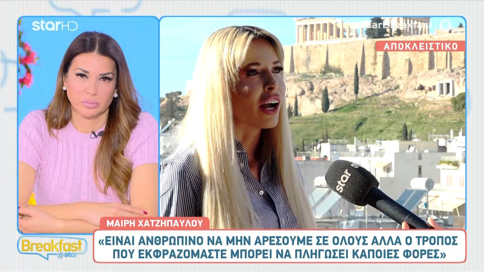 Σχετικά με την αντιμετώπισή της από τον κόσμο της τηλεόρασης, η ίδια δήλωσε ότι δεν έχει παράπονο, παρόλο που υπήρξαν αρνητικά σχόλια από παρουσιαστές. Αναγνωρίζει ότι είναι ανθρώπινο να μην αρέσουμε σε όλους, αλλά ο τρόπος έκφρασης μπορεί να πληγώσει. Τέλος, αποκάλυψε τις επιλογές της για τους πιο καλοντυμένους της ελληνικής τηλεόρασης: την Κατερίνα Καινούργιου για τις γυναίκες, με την οποία θεωρεί ότι μοιάζουν στο στυλιστικό κομμάτι, και τον Λάκη Γαβαλά για τους άντρες, θαυμάζοντας τον ως fashion icon που υποστηρίζει ό,τι φοράει.