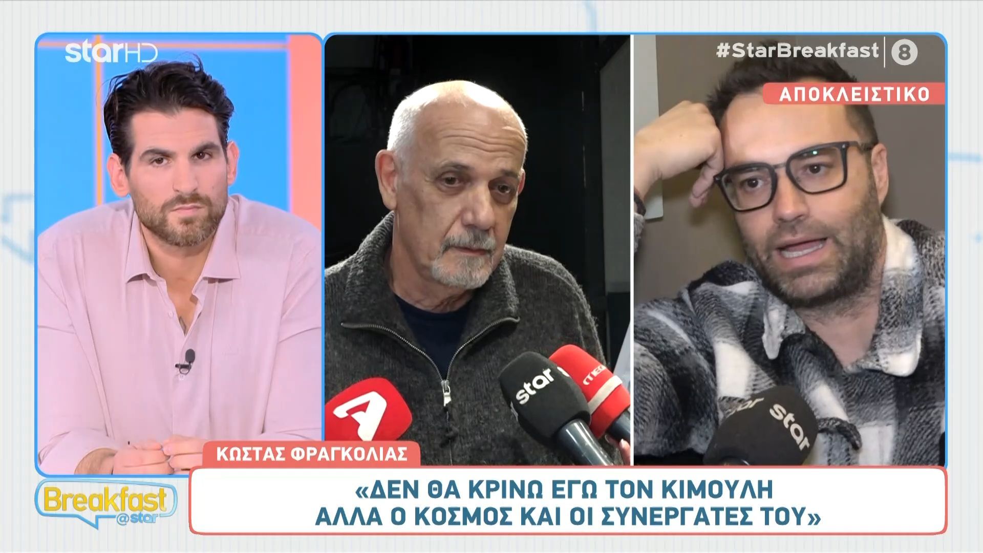 Ο παρουσιαστής χαρακτήρισε επίσης άκομψη την απομάκρυνση της Άννας Λιβαθηνού από το «Καλημέρα Ελλάδα», αναφέροντας ότι άδειασε το καμαρίνι της «άρον άρον». Για το δικό του συμβόλαιο, αποκάλυψε ότι είναι «δύο συν ένα» έτη, νιώθοντας καλυμμένος, σε αντίθεση με τον Δημήτρη Παπανώτα, ο οποίος δεν έχει το «συν ένα» καθώς σκέφτεται να συνταξιοδοτηθεί. Τέλος, για την ενδεχόμενη επιστροφή του Πέτρου Φιλιππίδη και του Γιώργου Κιμούλη στο θέατρο, δήλωσε ότι δεν είναι αυτός που θα κρίνει, αλλά ο καιρός, ο κόσμος και οι συνεργάτες τους. Παρόλο που θα συνεργαζόταν μαζί τους, παραδέχτηκε ότι θα είχε δεύτερες σκέψεις.