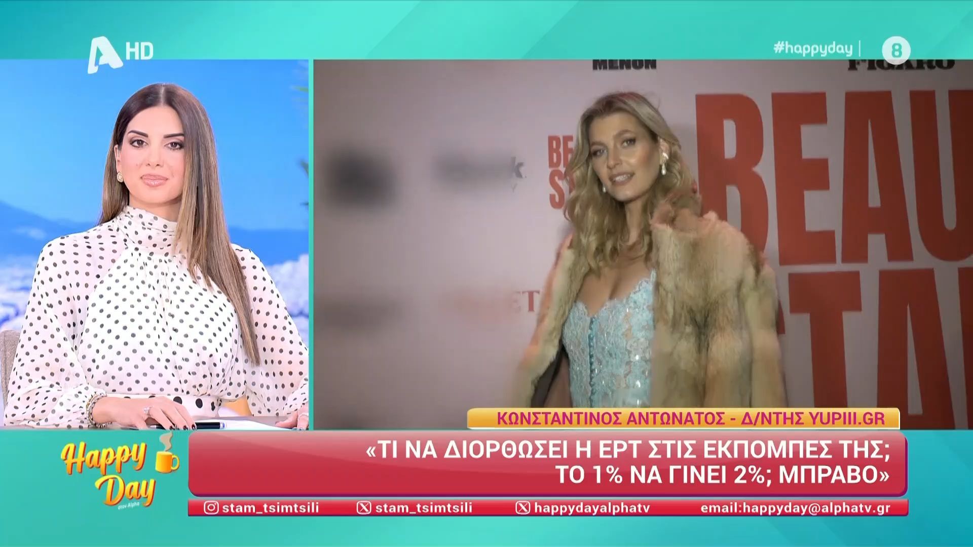 Η κάμερα του Happy Day βρέθηκε στα βραβεία Beauty Stars του Madame Figaro. Το παρών έδωσε και η Μαίρη Βυτινάρος, η οποία δήλωσε πως υπάρχει άντρας που της έχει πει να μη φοράει τακούνια επειδή είναι ήδη ψηλή.