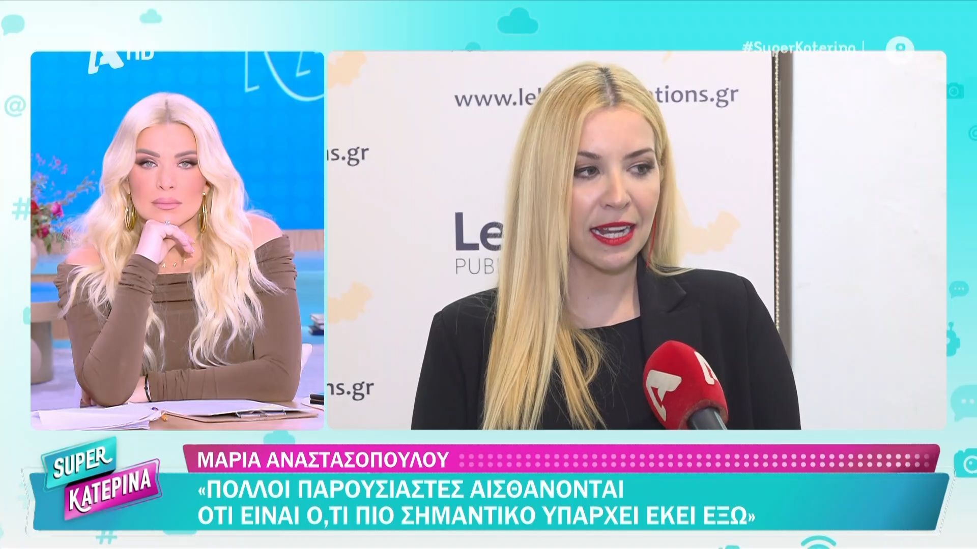 Η Μαρία Αναστασοπούλου βρέθηκε σε μία υπέροχη παρουσίαση βιβλίου, του νέου βιβλίου του Γιώργου Λεμπέση, «Ο κύκλος που ήθελε να γίνει κύκλος», το οποίο χαρακτήρισε πολύ διδακτικό. Όπως ανέφερε, όλοι περνάμε στη ζωή μας περιόδους πιο δύσκολες αλλά και πιο εύκολες, και ο κύκλος κυλάει, άλλοτε πιο δύσκολα και άλλοτε πιο εύκολα. Στη συνέχεια, αναφέρθηκε στη συνεργασία της με τον Άρη Πορτοσάλτε, τονίζοντας ότι ο ΣΚΑΪ τους επέλεξε για να κάνουν εκπομπή ώστε ο τηλεθεατής να ακούει και τις δύο απόψεις. Επεσήμανε πως αν είχαν τις ίδιες απόψεις, θα ήταν πολύ βαρετοί, ενώ οι όποιες διαφωνίες τους έχουν να κάνουν μόνο με το κομμάτι του αέρα, επί των θεμάτων, δημοσιογραφικά.