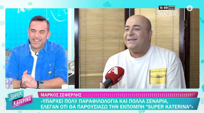 Συνέντευξη στην εκπομπή «Super Κατερίνα» παραχώρησε ο Μάρκος Σεφερλής, οποίος ανάμεσα σε άλλα μίλησε και για το θέμα της πολιτικής ορθότητας.