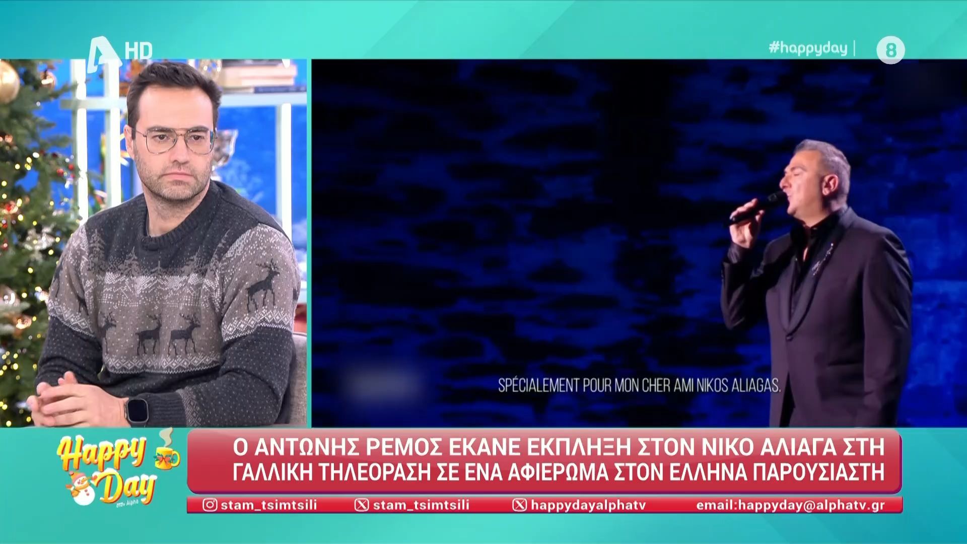 Ο Αντώνης Ρέμος έκανε έκπληξη στον Νίκο Αλιάγα στη γαλλική τηλεόραση σε ένα αφιέρωμα στον Έλληνα παρουσιαστή.