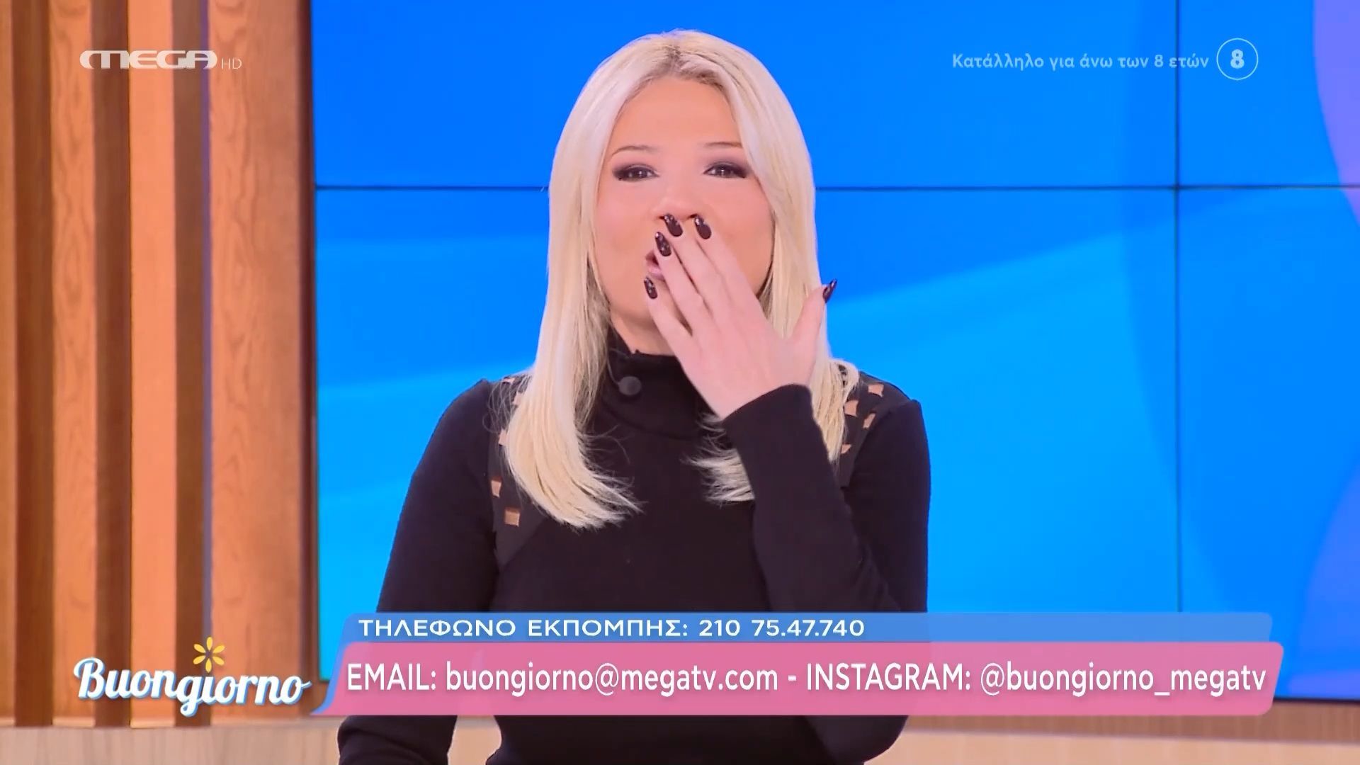 Η παρουσιάστρια της εκπομπής "Buongiorno" υποδέχτηκε τους τηλεθεατές και τους συνεργάτες της με ιδιαίτερο κέφι, κάνοντας κομπλιμέντα για την εμφάνισή τους. Στη συνέχεια, αναφέρθηκε στην απουσία του Ανδρέα, αποκαλύπτοντας ότι ήταν λίγο αδιάθετος.