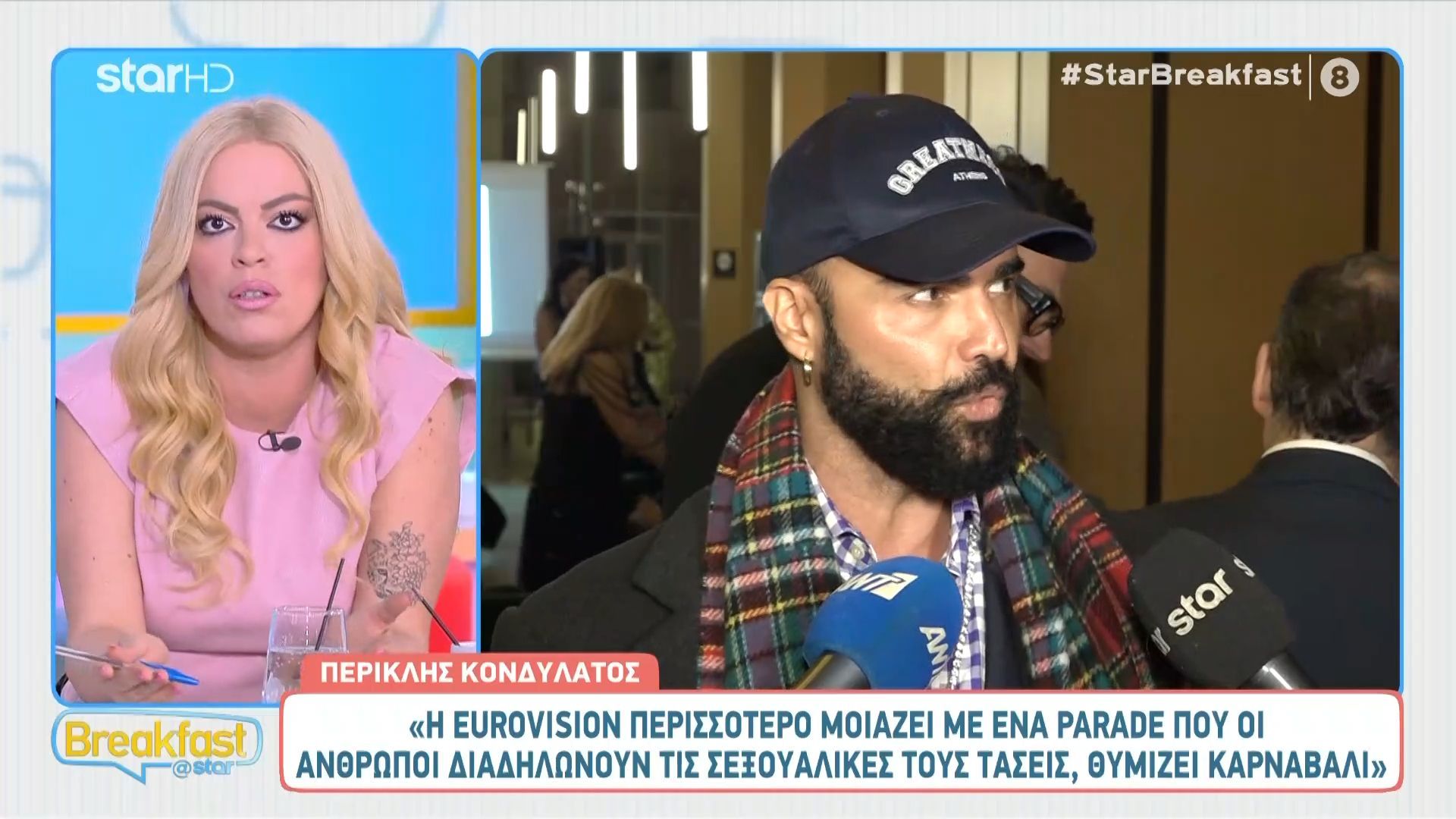 Ο Περικλής Κονδυλάτος μίλησε στην κάμερα του Breakfast @Star και σχολίασε την Eurovision, κάνοντας λόγο για ένα γεγονός που μοιάζει με παρέλαση σεξουαλικών τάσεων και θυμίζει καρναβάλι.