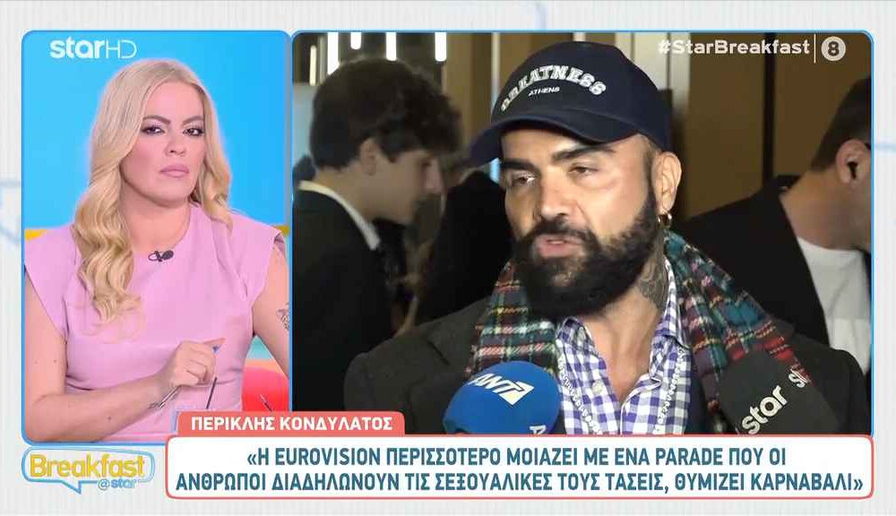 Αντιδράσεις προκαλεί η δήλωση του Περικλή Κονδυλάτου για τη Eurovision, ότι του μοιάζει περισσότερο με «καρναβαλική παρέλαση» ανθρώπων για να διαδηλώσουν τις σεξουαλικές τους τάσεις.