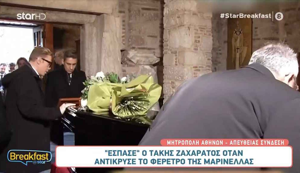 «Λύγισε» ο Τάκης Ζαχαράτος μπροστά στο φέρετρο της Μαρινέλλας.