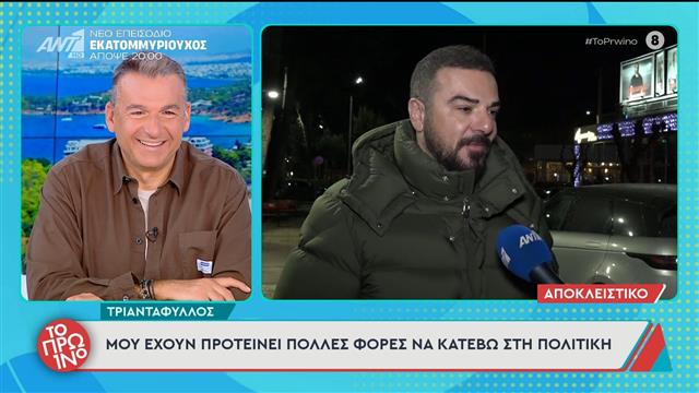 Ο Τριαντάφυλλος μίλησε στην κάμερα της εκπομπής του Γιώργου Λιάγκα και ρωτήθηκε για το ενδεχόμενο να ασχοληθεί με την πολιτική.
