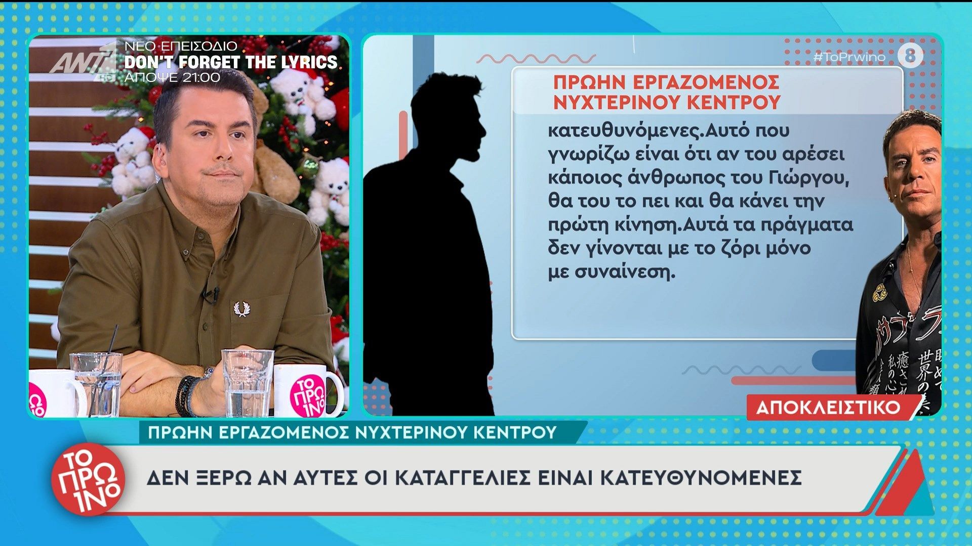 Υπόθεση Μαζωνάκη: Πρώην εργαζόμενος νυχτερινού κέντρου μιλάει στο Πρωινό