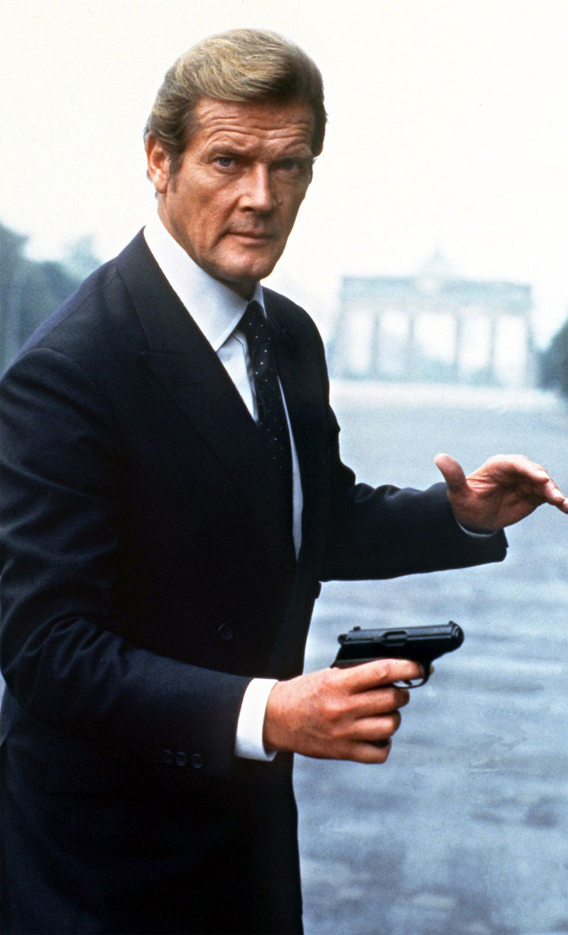 Ο σερ Ρότζερ Τζωρτζ Μουρ (Roger George Moore) ήταν Άγγλος ηθοποιός, γνωστός από τον ρόλο του Σάιμον Τέμπλαρ στην τηλεοπτική σειρά Ο Άγιος (δεκαετία του 1960) και μετέπειτα από τον ρόλο του μυστικού πράκτορα Τζέιμς Μποντ σε επτά κινηματογραφικές ταινίες, μεταξύ του 1973 και του 1985. Εργάσθηκε επίσης ως μοντέλο, ενώ εμφανίσθηκε και σε πολλές άλλες ταινίες και τηλεοπτικές σειρές, όπως οι Ιβανόης (1958–1959), Μάβερικ (1961) και κυρίως τη σειρά The Persuaders! (1971) μαζί με τον Τόνι Κέρτις.