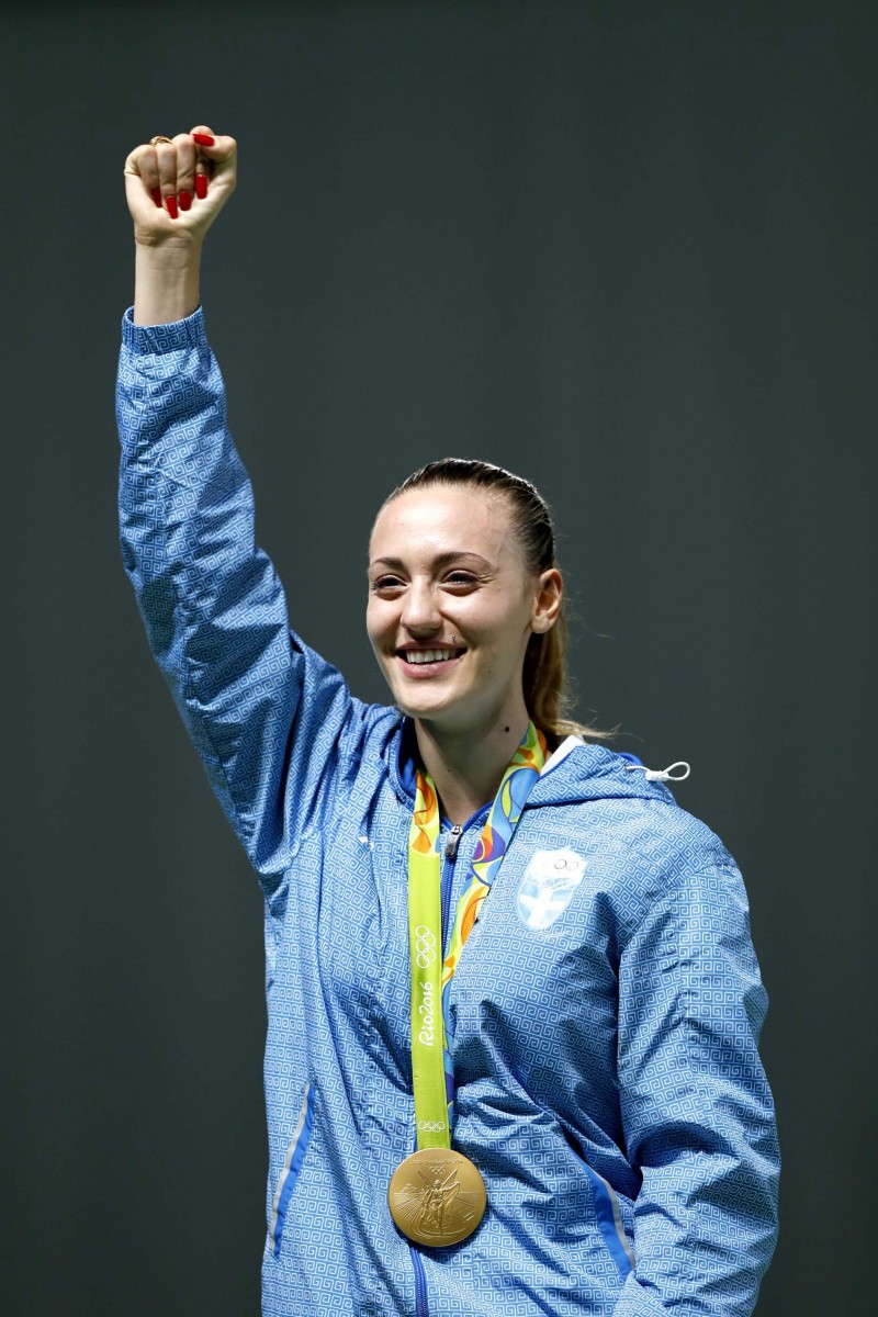 Στους Ολυμπιακούς Αγώνες του 2016 στο Ρίο ντε Τζανέιρο κατέκτησε το χρυσό μετάλλιο στο πιστόλι 25 μέτρων και το χάλκινο μετάλλιο στο αεροβόλο πιστόλι 10 μέτρων και έγινε ο δεύτερος Έλληνας αθλητής μετά τον Κωνσταντίνο Τσικλητήρα το 1912, και η πρώτη γυναίκα Ελληνίδα αθλήτρια στην ιστορία των Ελληνικών Ολυμπιακών Ομάδων, που κατέκτησε δύο μετάλλια στην ίδια διοργάνωση Ολυμπιακών Αγώνων.