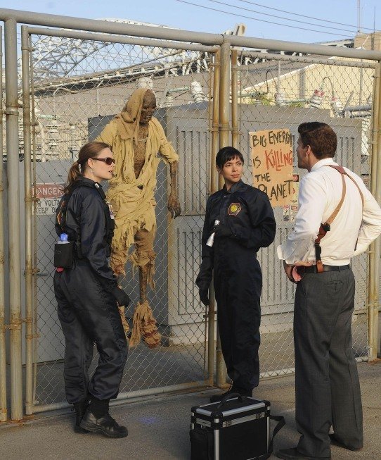 A mysteriously charred body that is found on an electrical fence turns out to be a mummified Egyptian royal that was loaned to the Jeffersonian from the Egyptian government. The team investigates as the curator that was prepping the mummy is found murdered. Booth's supervisor, the assistant director of the FBI, Andrew Hacker (Diedrich Bader), shows interest in Brennan and they later go on a date. Sweets convinces Brennan to give Daisy (Carla Gallo) another chance, having her return to the Jeffersonian as an intern.