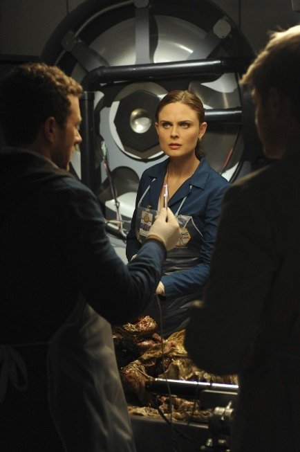 When the remains of a local chicken farmer are found mutilated by a nearby river, Booth and Brennan investigate the various suspects, including several animal rights activists who are protesting outside the chicken factory. Angela, feeling bothered by the practices of the chicken farm, asks for donations to save a piglet in which Brennan declines as her belief of saving one will not change anything, causing her to question why they are friends. After Wendell makes a donation to Angela, they kiss and a relationship starts to develop as Angela has now been celibate for five and half months.