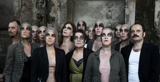 Σε αυτή τη σύγχρονη πρόταση του Θοδωρή Αμπαζή αξιοποιείται η μουσικότητα του λόγου και η δομή της τραγωδίας με τη σύμπραξη 32 μουσικών και 15 ηθοποιών. Η παράσταση παρουσιάζεται στο Κάστρο της Πάτρας αλλά και στο Αρχαίο Θέατρο της Επιδαύρου στο πλαίσιο του Φεστιβάλ Αθηνών.