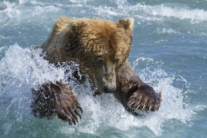 • Ψήνοντας το ψάρι στα χείλη: υπάρχουν διάφορες τεχνικές που χρησιμοποιούν οι αρκούδες, όταν ψαρεύουν. Μερικές επιλέγουν να βουτήξουν με την κοιλιά τους μέσα στο ποτάμι και να προσγειωθούν πάνω σε έναν ανυποψίαστο σολομό. Άλλες πάλι αρέσκονται στην κλασική μέθοδο. Συντονισμένες χεριές και δαγκωνιές, ώστε να πιάσουν το γεύμα τους. Κάποιες άλλες, τέλος, πιο δυνατές επιλέγουν να κλέψουν τα ψάρια από άλλες πιο αδύναμες.