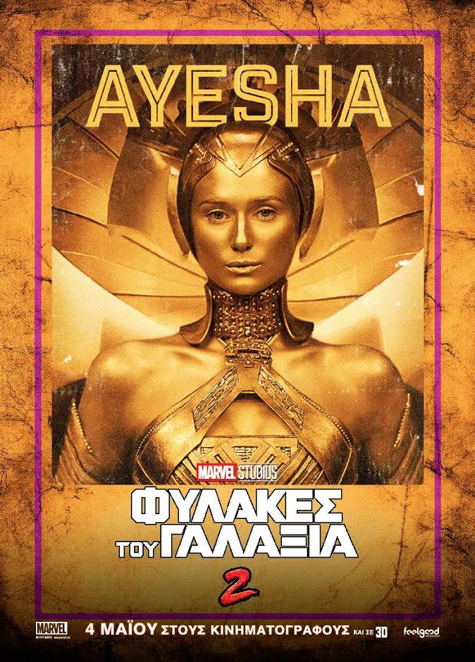 Στην αρχή της δεύτερης ταινίας, οι Φύλακες έχουν μια αποστολή για την Ayesha, τη χρυσή αρχι-ιέρεια της γενετικά μεταλλαγμένης, τέλειας και αλαζονικής φυλής με το όνομα Sovereign. Για τον ρόλο της Ayesha, οι δημιουργοί διάλεξαν την καθηλωτική καλλονή από την Αυστραλία με το όνομα Elizabeth Debicki (The Great Gatsby, The Man from U.N.C.L.E), η οποία είναι πάνω από 1.90. Η χρυσή φυλή έρχεται σε αντίθεση με τους…ανοικοκύρευτους Φύλακες, παρόλα αυτά η Ayesha είναι κάπως γοητευμένη από τον Peter.