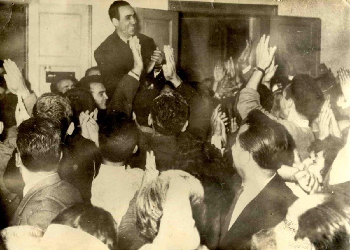 Ο Γρηγόρης Λαμπράκης γεννήθηκε στην Κερασίτσα Αρκαδίας το 1912. Ιατρός γυναικολόγος, Υφηγητής της Ιατρικής και πρωτοπόρος της Ενδοκρινολογίας στην Ελλάδα. Στον μεσοπόλεμο υπήρξε πρωταθλητής Ελλάδας στο άλμα εις μήκος, στο τριπλούν και στους δρόμους ταχύτητας, 100 και 200 μέτρα. Εκπροσώπησε την Ελλάδα στους Ολυμπιακούς του Βερολίνου, σε Παγκόσμιους Φοιτητικούς Αγώνες κι επανειλημμένα στέφθηκε Βαλκανιονίκης – το ρεκόρ του μάλιστα στο άλμα εις μήκος έμεινε ακατάρριπτο για 21 ολόκληρα χρόνια. Την περίοδο της Κατοχής οργάνωνε συσσίτια και εξέταζε δωρεάν τους αθλητές. Την κοινωνική του προσφορά ως γιατρός συνέχισε σε όλη τη διάρκεια της ζωής του προσφέροντας αμισθί τις υπηρεσίες του στους άπορους. Το 1961 θα βγει βουλευτής Πειραιά συνεργαζόμενος με την Αριστερά και το 1963 θα καταφέρει παρά τις απαγορεύσεις να περπατήσει στην Α΄ Μαραθώνια Πορεία Ειρήνης και να γίνει σύμβολο του Παγκόσμιου Φιλειρηνικού Κινήματος. Θα δολοφονηθεί στη Θεσσαλονίκη, από παρακρατικούς τραμπούκους σε συνεργασία με την αστυνομία, σε μια εκδήλωση των Φίλων της Ειρήνης.